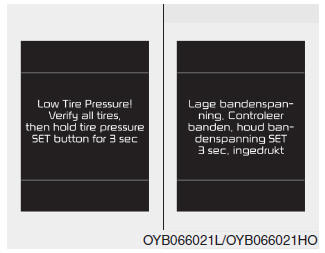 Het waarschuwingslampje in het instrumentenpaneel gaat branden wanneer één of meerdere banden na het instellen van het TPMS een te lage bandenspanning heeft.