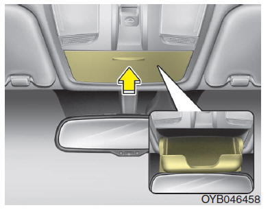 Druk op het afdekkapje om het opbergvak langzaam te openen. Plaats uw zonnebril met de glazen naar boven gericht in het opbergvak. Druk het opbergvak dicht.