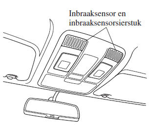 - Om afscherming van de inbraaksensor te voorkomen, geen voorwerpen of lading hoger dan de hoofdsteunen in de buurt van de inbraaksensor plaatsen.