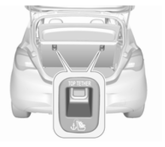 De auto heeft twee bevestigingsogen op de rugleuning van de achterbank.