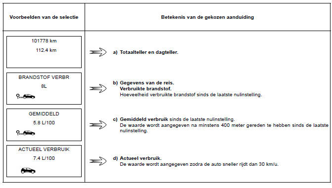| Boordcomputer met de boodschap afstand tot de volgende onderhoudsbeurt (vervolg) | |