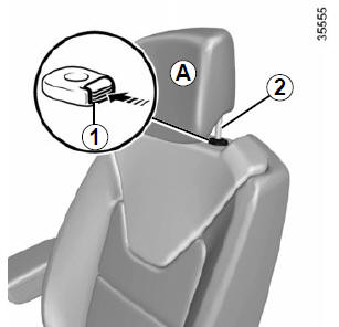 Druk op de knop 1 en trek de hoofdsteun omhoog tot hij vrijkomt.