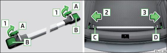 | Let op De fietsendrager kan niet worden ingebouwd als de variabele bagageruimtevloer in de bagageruimte is opgeborgen. |