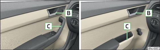 - Om het portier van binnenuit te sluiten, de portiergreep C vastpakken en het portier sluiten.